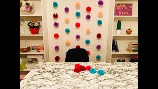 How to make a garland out of tissue paper pompoms.